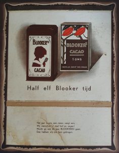 Aldus het achterblad van een Blooker’s cacao scheurkalender. Van welk jaar is niet bekend.